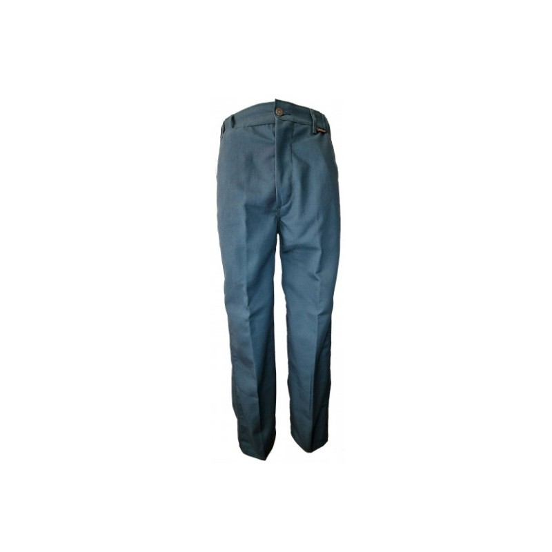 Pantalon de travail droit, ceinture élastiquée à la taille, à passants, braguette boutons. il est en tissu sergé, 67 % polyester 33 % coton